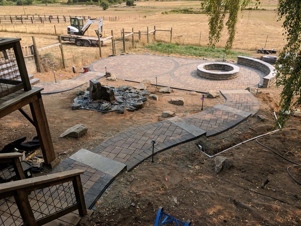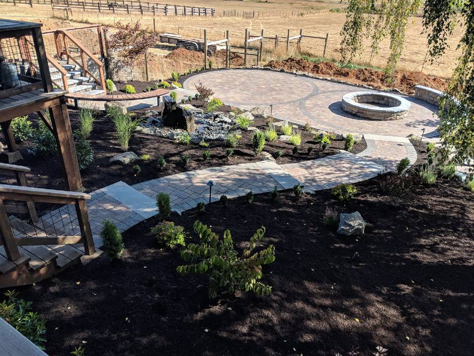Paver Patio, Pathways, Water Feature, Seat Wall, Fire Pit and Low Voltage Lighting Click any image for a larger view.