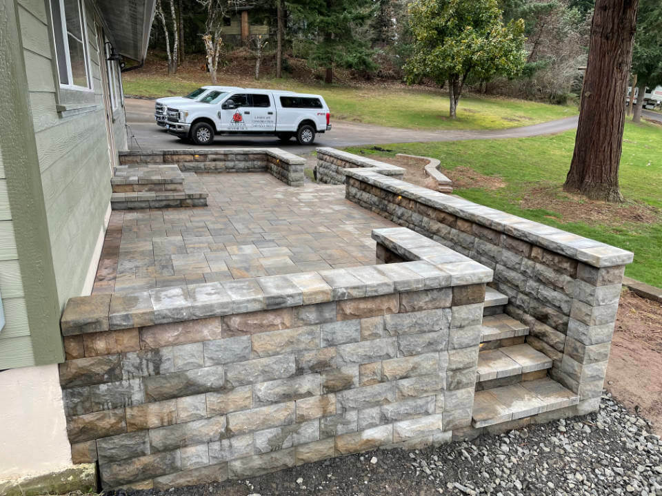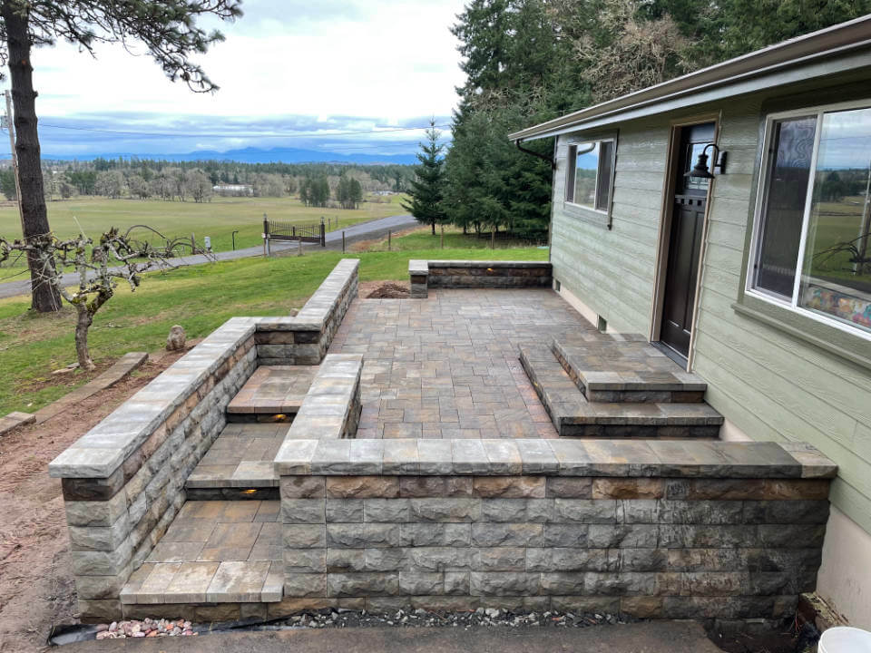 Seat Walls, Stairs, Paver Patio, Low Voltage Lighting